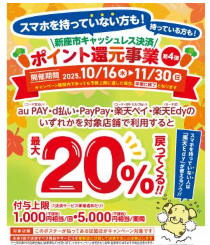 いま新座市では「新座市キャッシュレス決済ポイント還元事業」がアツいです!
