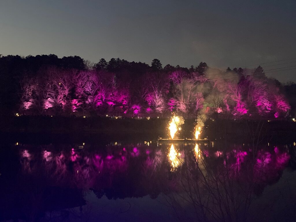 5分間の短い花火でしたが、湖に映って超きれい~✌